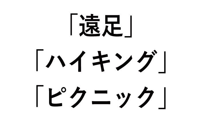 - 「遠足」「ハイキング」「ピクニック」の比較