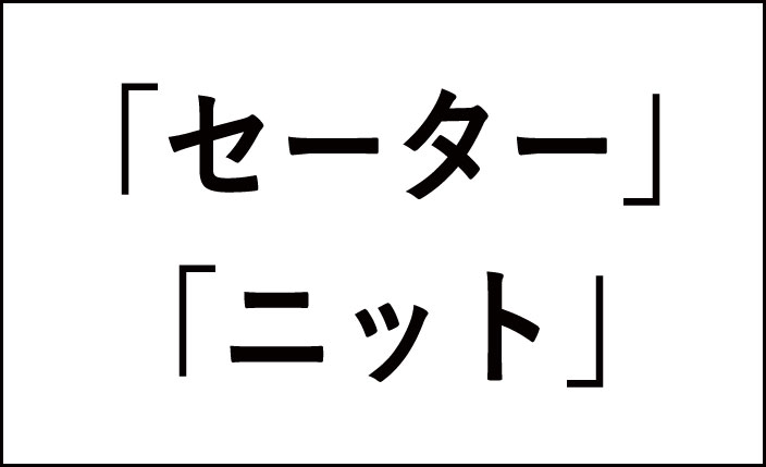 また、最近の傾向として「セーター」を「ニット」と呼ぶことも増えていますが、どちらの言葉も使いやすいので、自分の好みで選んでください。