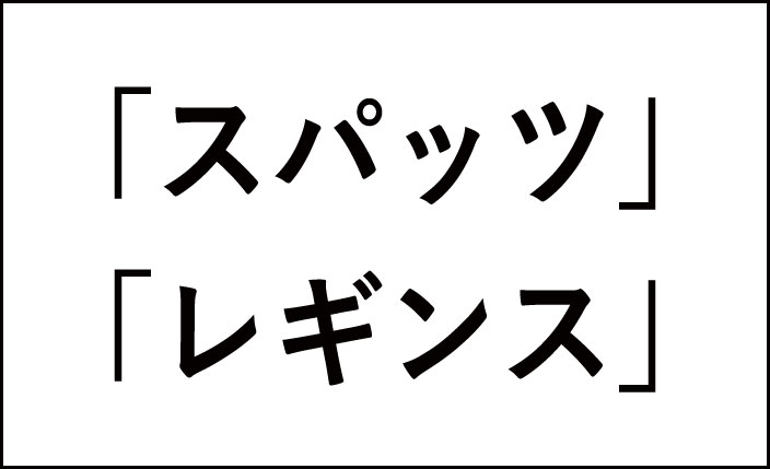 ぴっちりしたのがスパッツで、このうち丈が長くファッション性の強いものを最近はレギンスと呼ぶ