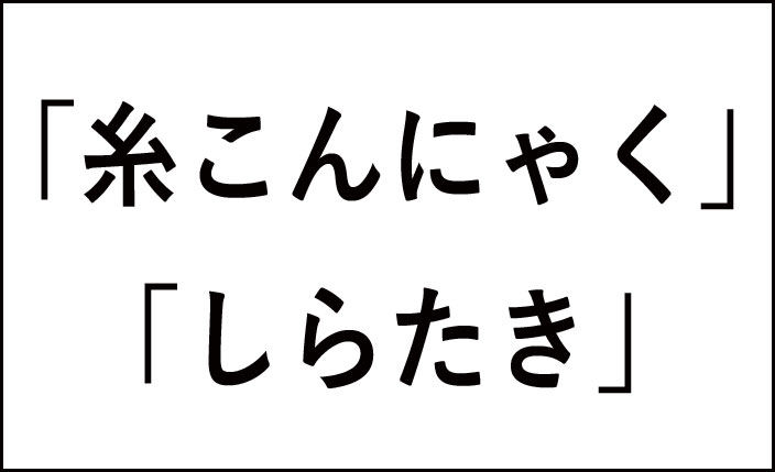 - 関東では「しらたき」、関西では「糸こんにゃく」と呼ばれることが多い