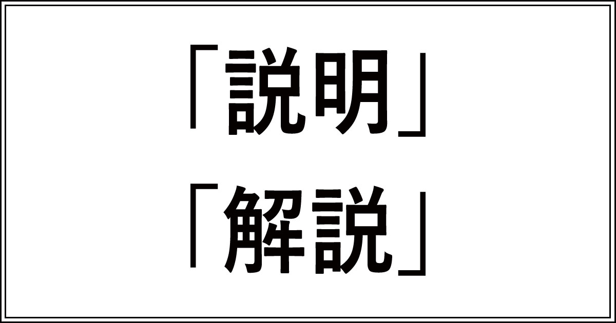 一方「解説」は、物事の要点や意味をわかりやすく説明することですが、単に事実を伝えるだけでなく、専門的な知識や見解を含めて詳しく分析・説明することを指します。