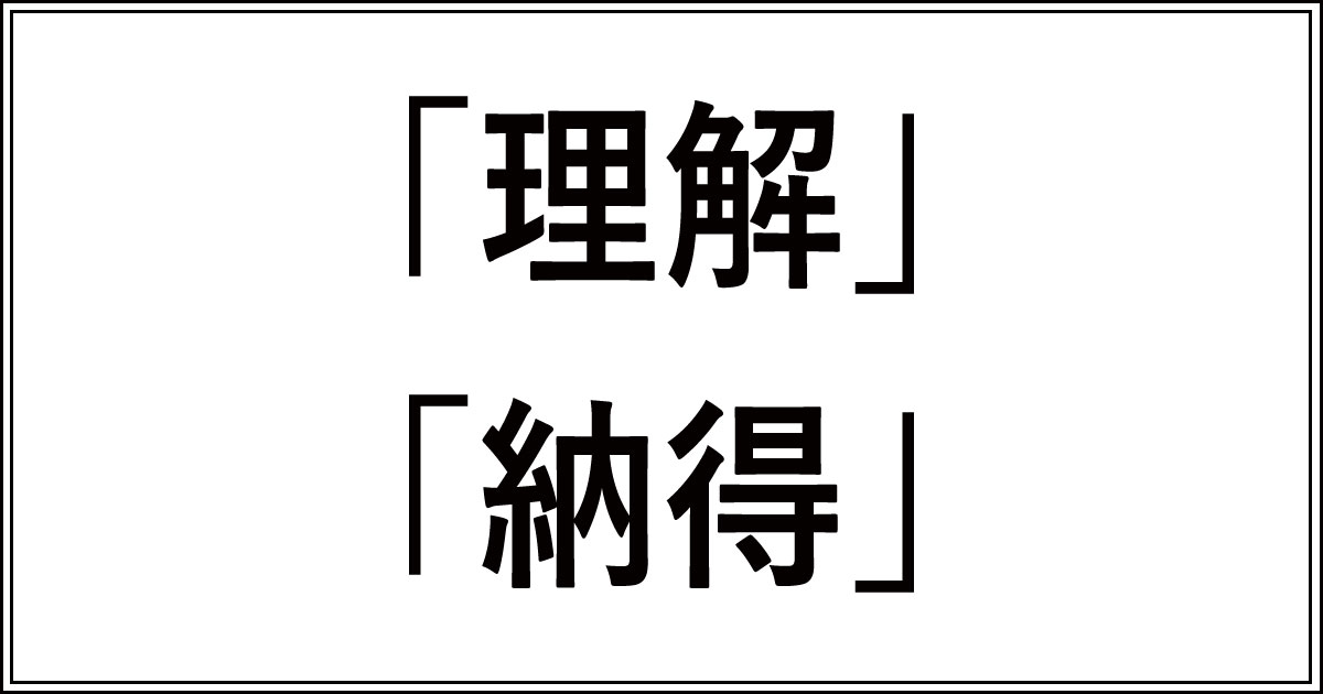 理解は頭で分かること、情報や知識の把握 納得は心から受け入れること、理解した上での感情的な受け入れ