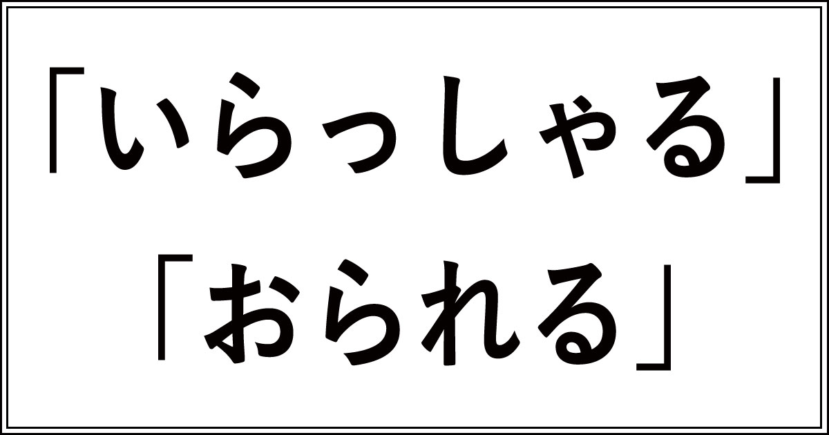 ついでに、どっちかというと、「おられる」は、謙譲語というイメージを自分は持っている。間違いではないそうだけど。できるだけ、「いらっしゃる」を使うようにしている。