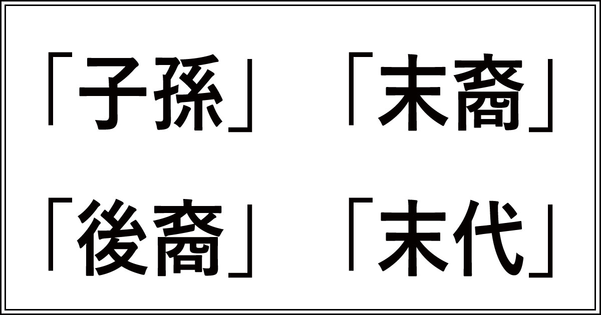 「子孫」「末裔」「後裔」「末代」の使い分け方