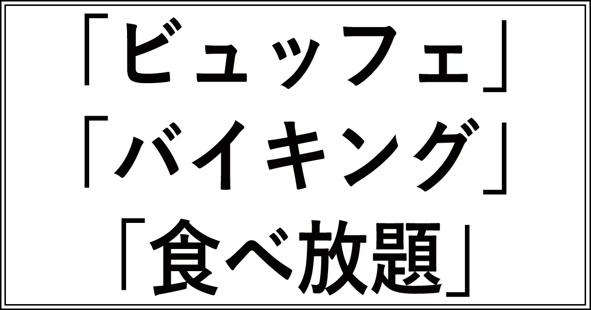 「ビュッフェ」「バイキング」「食べ放題」の違いをまとめると、このようになります。