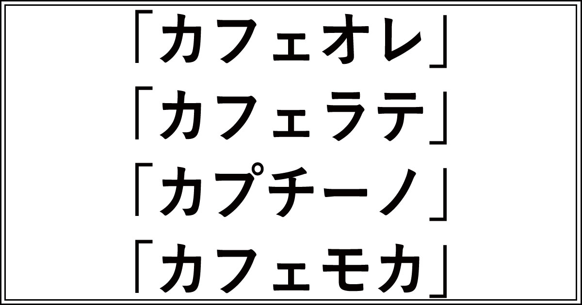 カフェオレ、カフェラテ、カプチーノ、カフェモカの違いを、もう一度整理しましょう。