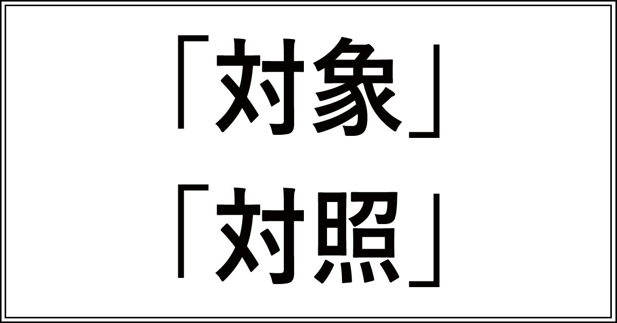 私が迷った時の判断方法は、「これを『比較』に置き換えられるかどうか」です。置き換えられるなら「対照」、置き換えられないなら「対象」というわけです。