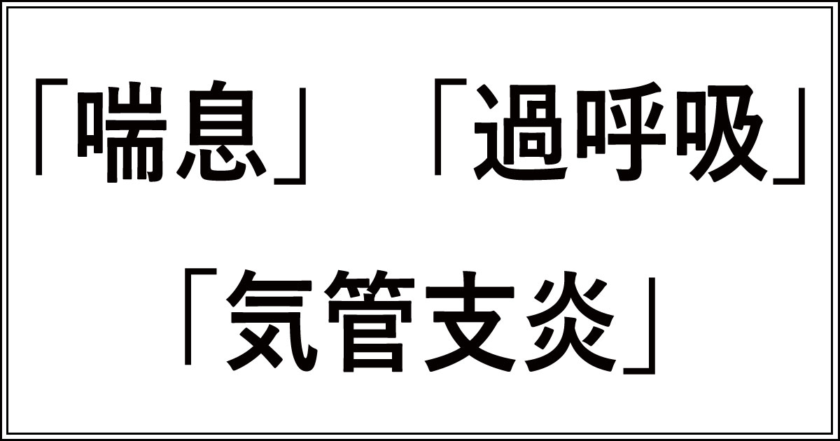 喘息・過呼吸・気管支炎は、どれも呼吸に関する症状が出る病気ですが、それぞれ特徴が異なります。