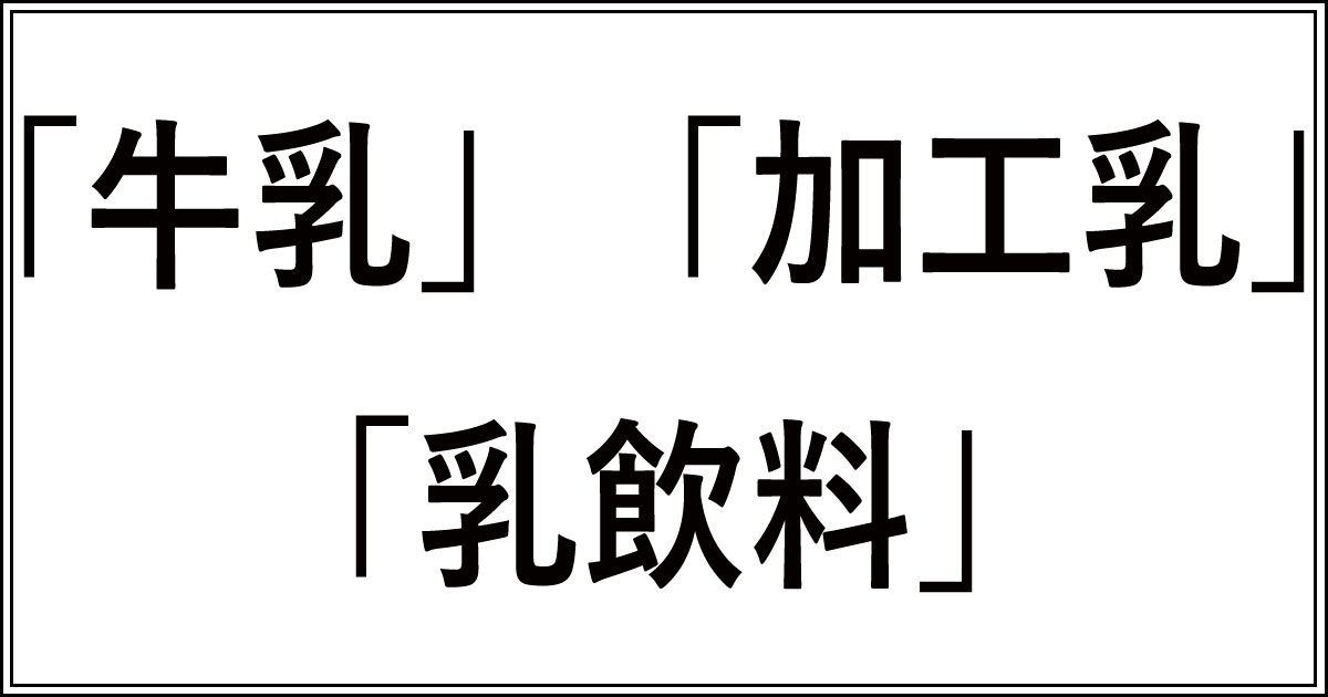 - 牛乳:「牛乳」「成分調整牛乳」「低脂肪牛乳」など