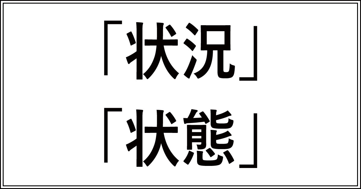 簡単に言うと、「状況」は動画のような動的なイメージ、「状態」は写真のような静的なイメージと考えると分かりやすいですね。
