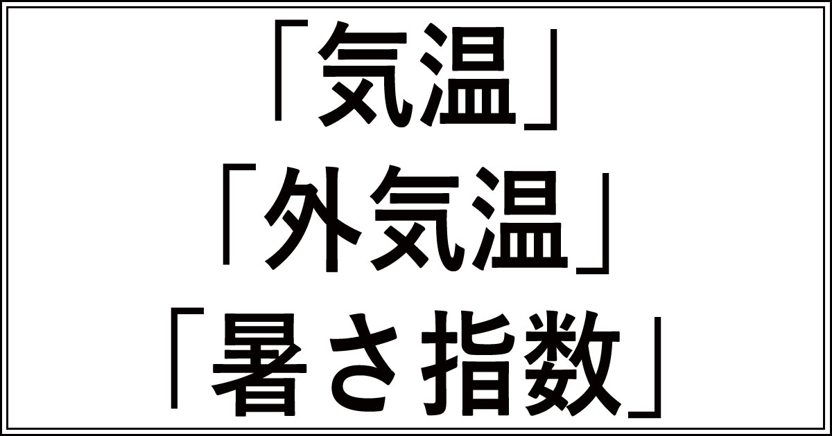 外気温は、室内温度と区別したい場合や、屋外の環境を強調したい時に使われます: