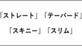 テーパード(Tapered)とは「先細る」「次第に細くなってゆく」という意味があり、パンツのシルエットを表す言葉として使われています。