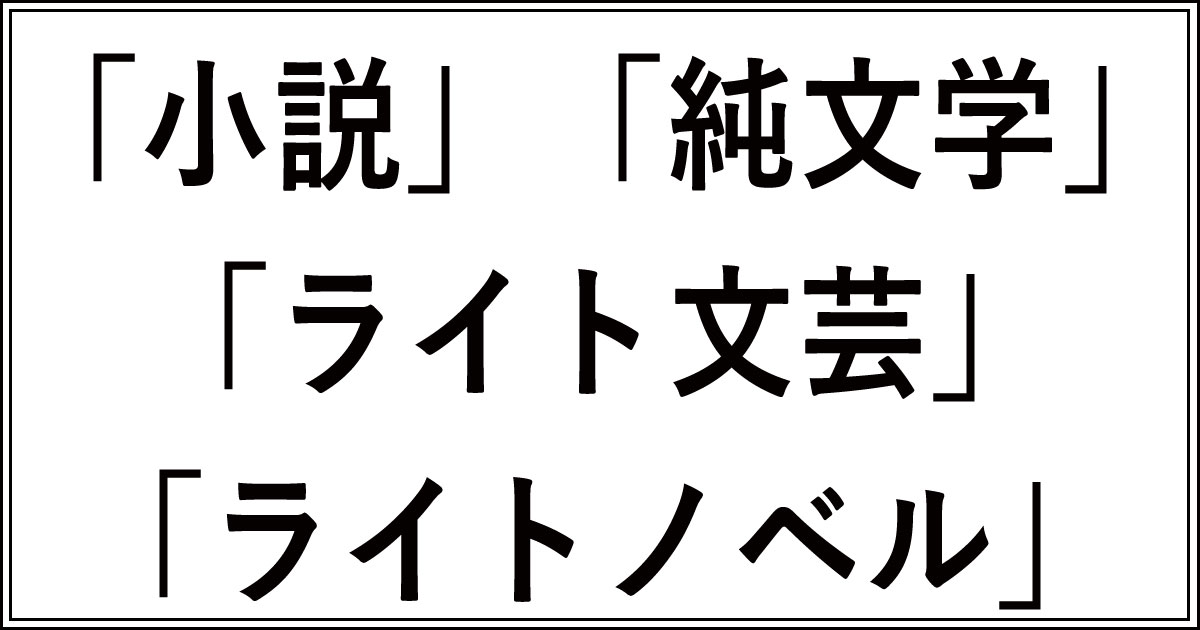 小説、純文学、ライト文芸、ライトノベルの違いを簡単にまとめると以下のようになります。