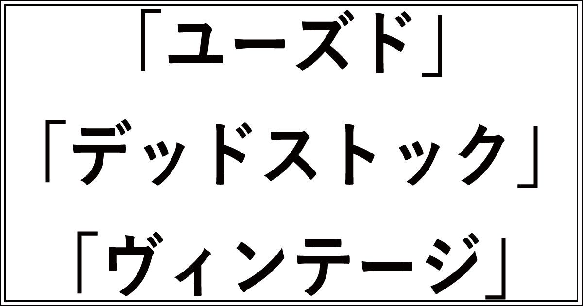 古着屋さんやフリマアプリでよく見かける「ユーズド」「デッドストック」「ヴィンテージ」という言葉。どれも古い服を指しているように見えるけれど、実はそれぞれ全く違う意味を持っているんです。