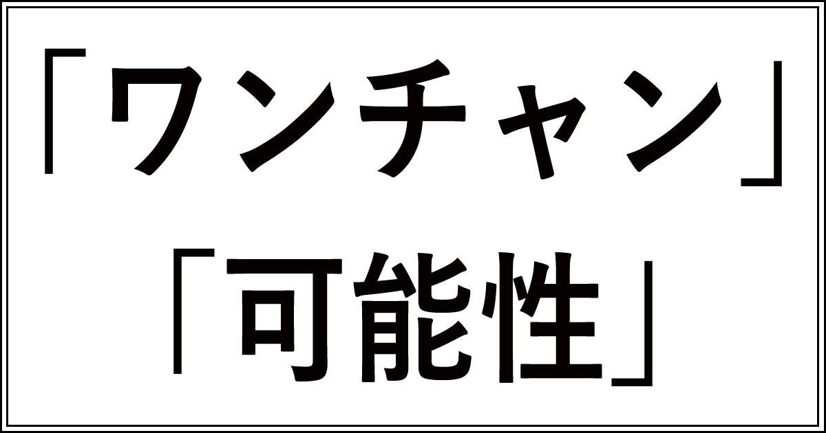 「ワンチャンあるかも!」って友達が言ってるのを聞いたことありませんか?この「ワンチャン」って、「可能性がある」って意味だと思うんですけど、じゃあ普通に「可能性がある」って言うのと何が違うの?って疑問に思いますよね。