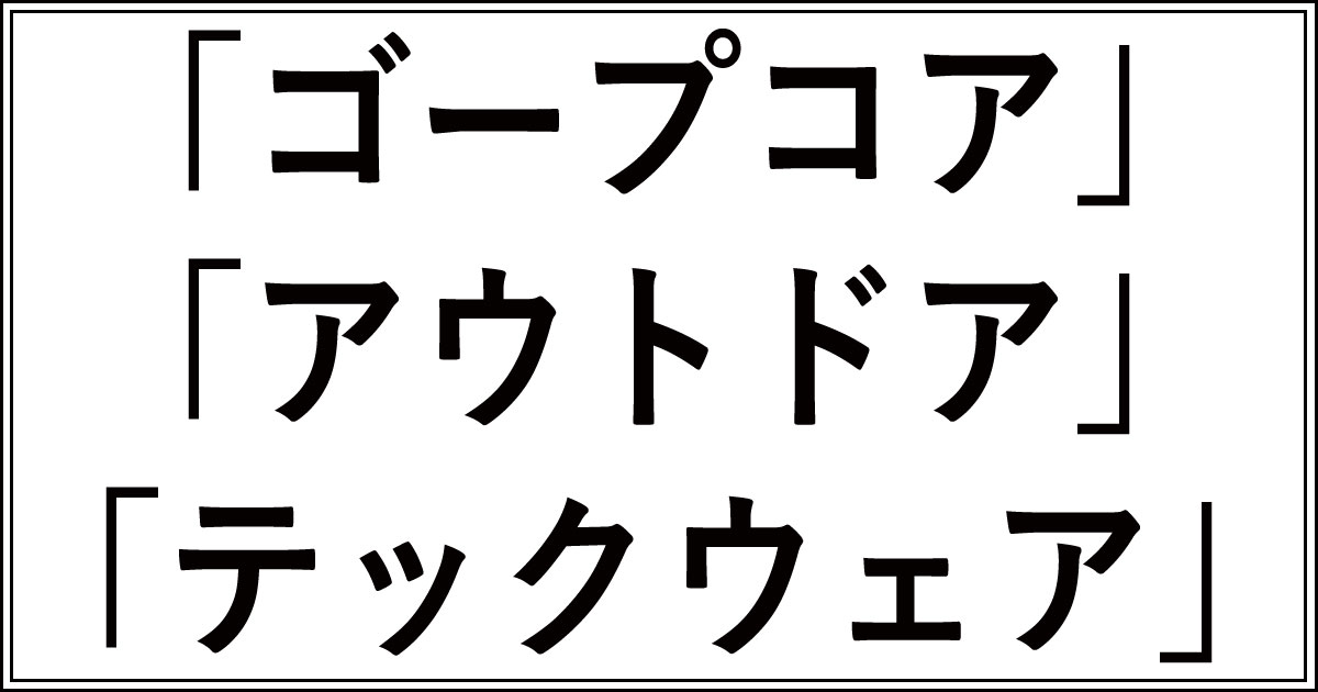 ゴープコア、アウトドア、テックウェアの違い、理解していただけましたか?最後に、もう一度ポイントを整理しましょう。