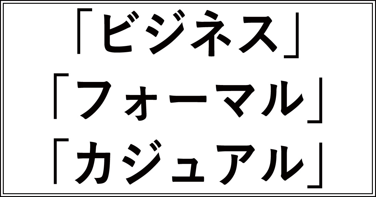 「ビジネス」「フォーマル」「カジュアル」の違いをまとめると、以下のようになります。