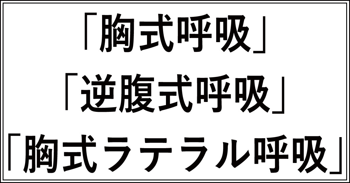 今回は、「胸式呼吸」「逆腹式呼吸」「胸式ラテラル呼吸」の違いについて詳しく説明しました。