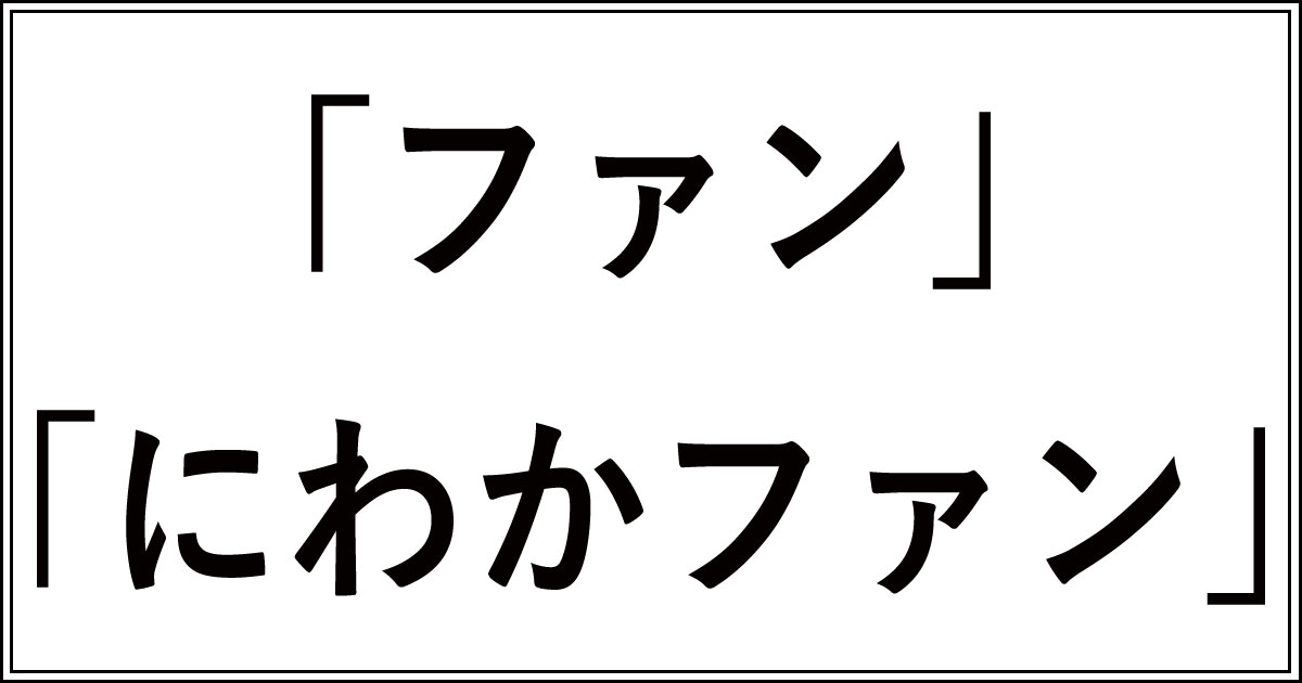 簡単にまとめると、「ファン」は長い期間応援し続けていて知識も深い人、「にわかファン」は急に好きになったばかりで知識がまだ浅い人、ということでしたね。