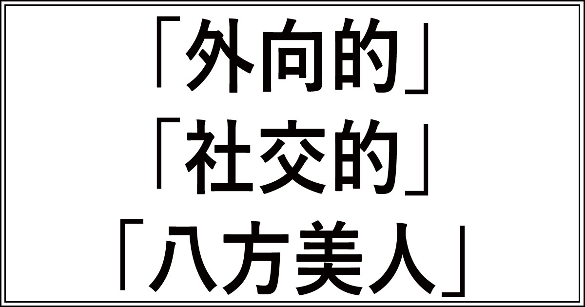 この比較からわかるように、外向的は「エネルギー源がどこにあるか」、社交的は「人付き合いのスキル」、八方美人は「嫌われたくないという心理からの行動」と、それぞれ全く異なる側面を表しているんです。