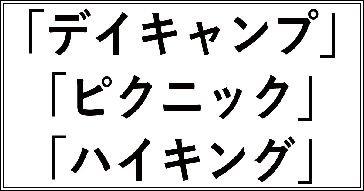 デイキャンプ、ピクニック、ハイキングは、どれも外で楽しむレジャーですが、それぞれ目的が違います。