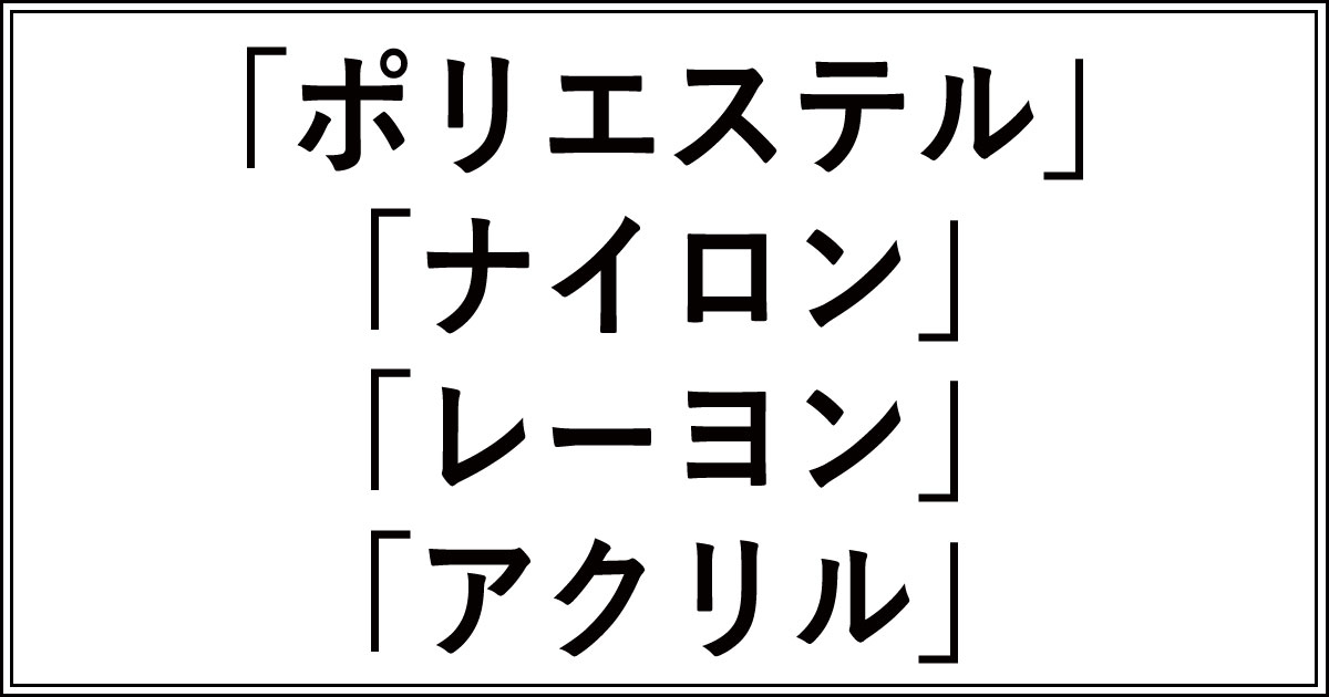 - ポリエステル、ナイロン、アクリル:合成繊維