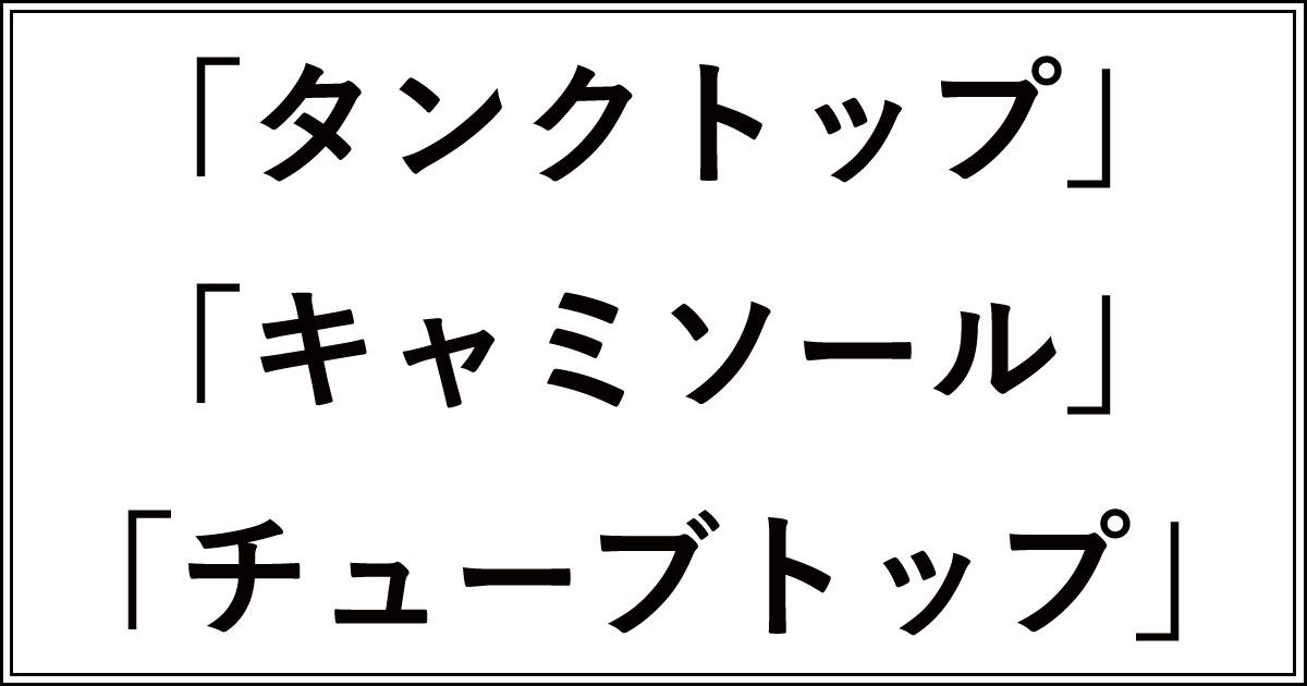 タンクトップ、キャミソール、チューブトップの違いを整理すると、こんな感じになります。