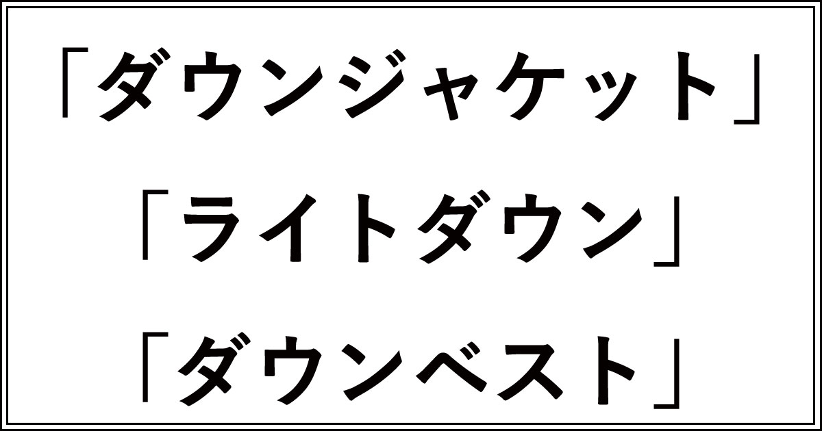 ダウンジャケット、ライトダウン、ダウンベストの違いをまとめます。