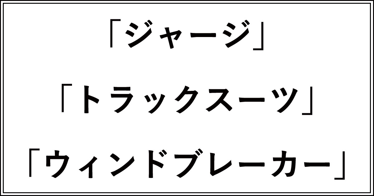 ジャージ、トラックスーツ、ウィンドブレーカーの違い