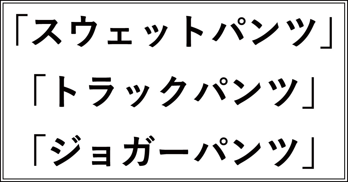 スウェットパンツ、トラックパンツ、ジョガーパンツの違いについて解説してきました。