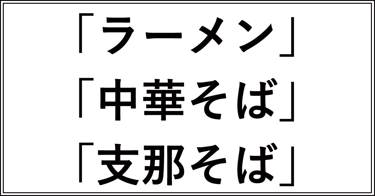 結論から言うと、ラーメン、中華そば、支那そばは全部同じ食べ物です。味やスープ、麺の太さなどで区別されているわけではないんですね。