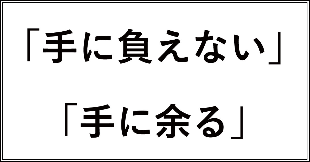 ちなみに、手に負えないの反対は「手に負える」、手に余るの反対は「手に余らない」となるはずですが、実際にはあまり使われません。
