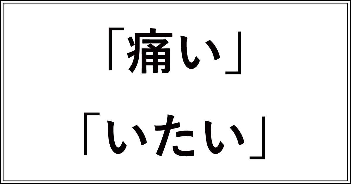 「痛い」と「いたい」は、基本的に同じ言葉の漢字表記とひらがな表記の違いです。 体や心の痛みを表す時は、必ず漢字で「痛い」と書くのが正しい使い方です。