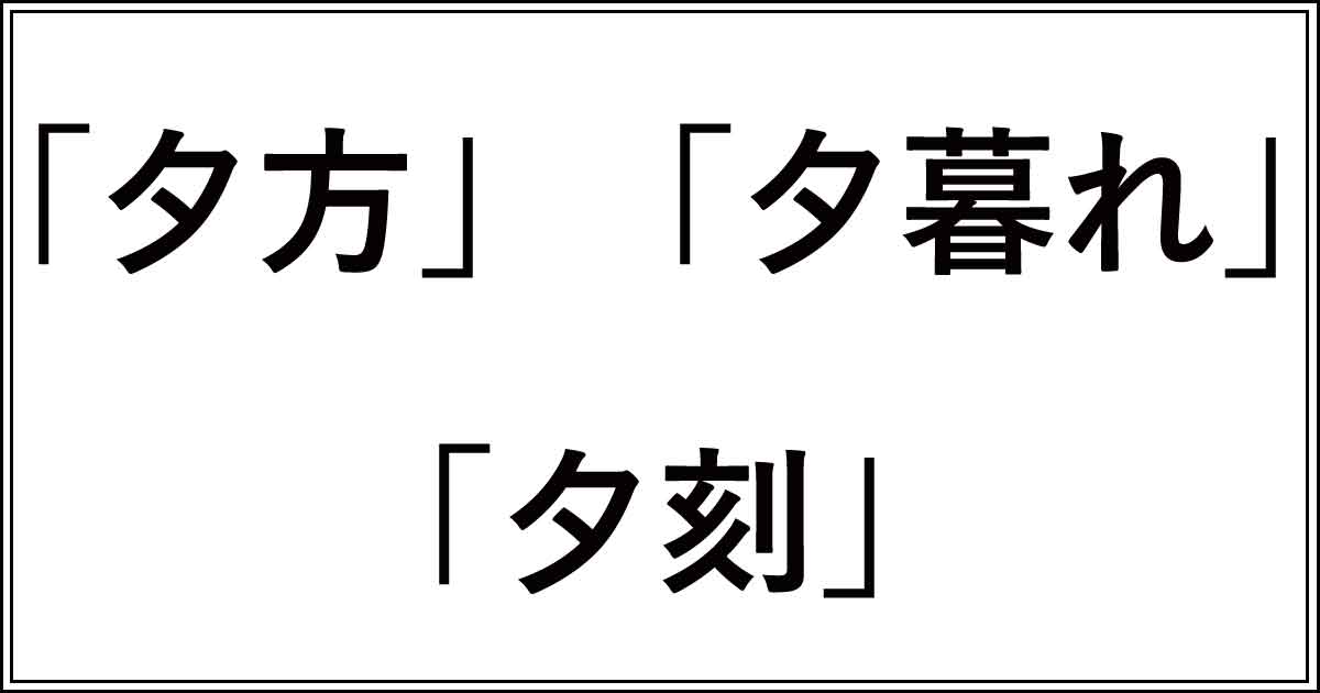 つまり、時間帯の広さは「夕方=夕刻>夕暮れ」という関係になります。