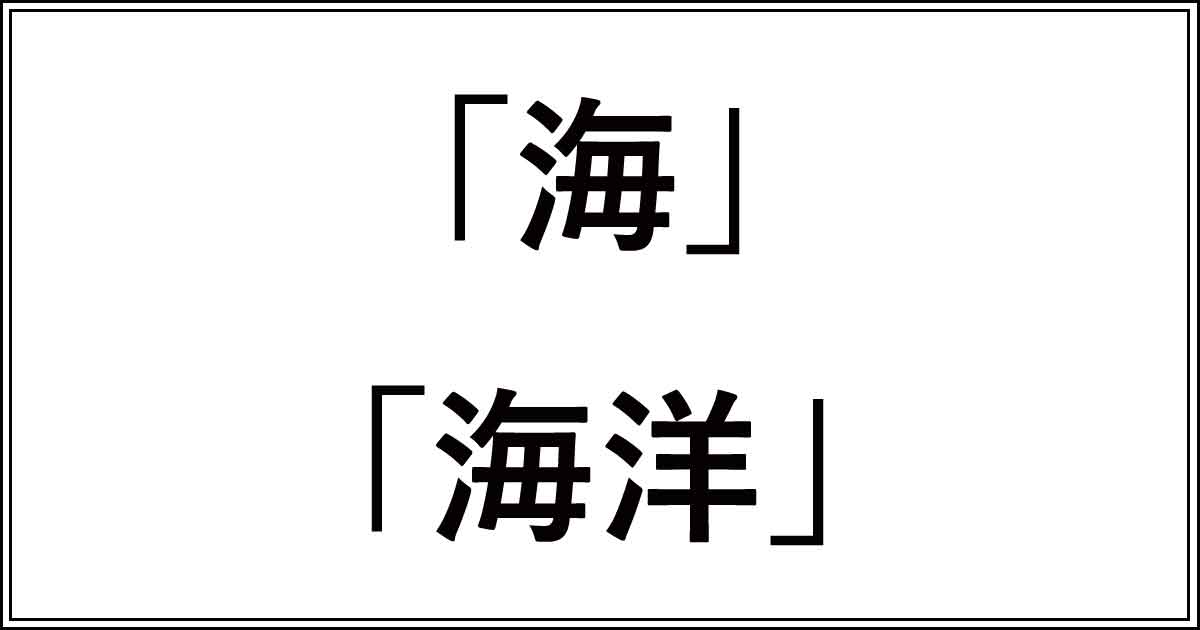「海洋国家日本」「海洋進出」「海洋プラスチック問題」など、グローバルな視点で海を捉えるときに使います。