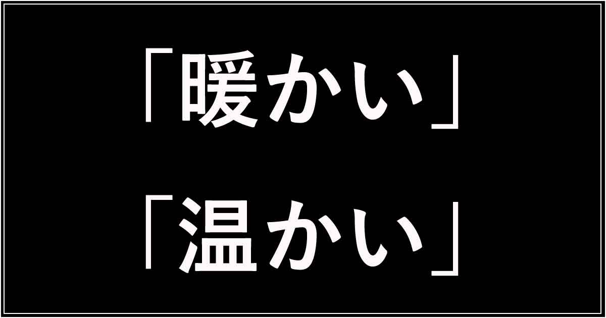 2つの漢字は「空間」か「接触・心情」かという違いがあります。 対義語で考えると簡単に使い分けができます。対義語が「寒い」なら「暖かい」、対義語が「冷たい」なら「温かい」を使います。この異字同訓の使い分けをマスターして、正しい日本語表現を身につけましょう!
