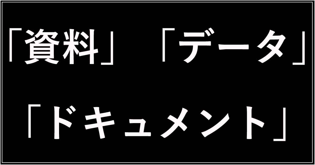 目的のための材料なら「資料」、客観的な事実なら「データ」、文書ファイルなら「ドキュメント」を使います。